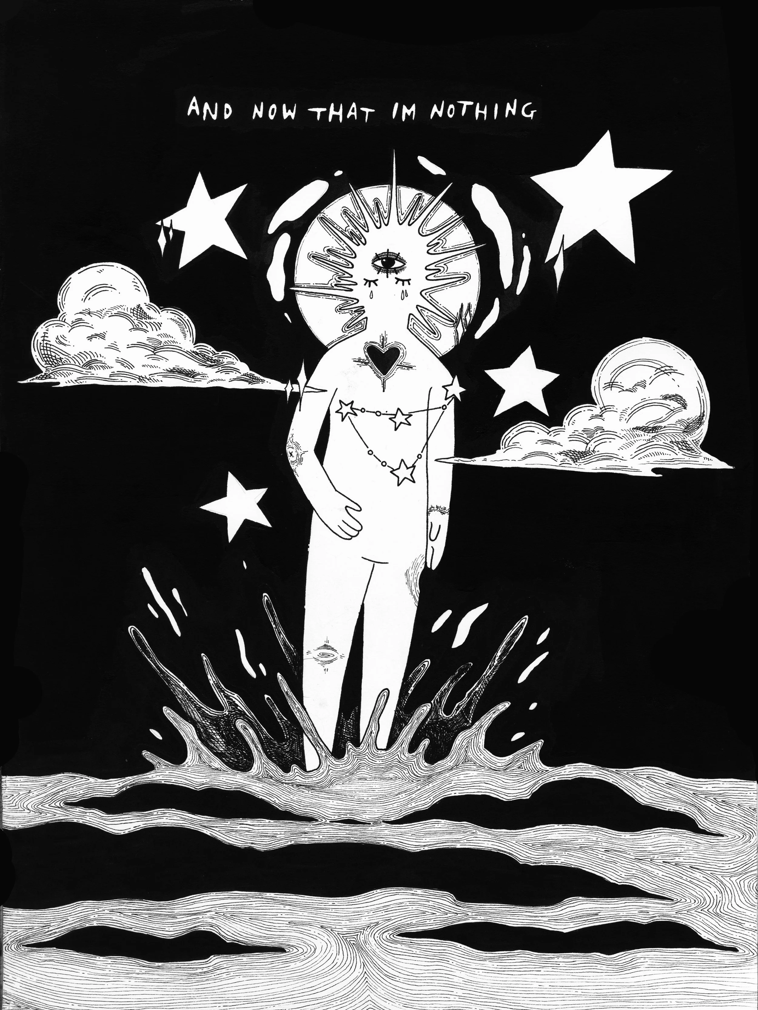 Traditional pen and ink illustrations depicting the confusing side of grief and loss.